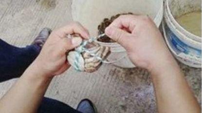 将橡皮筋或者细绳套在螃蟹的钳子上,然后用力拉紧。注意,绑的时候要尽量靠近钳子的根部,这样绑得更加牢固。如果使用螃蟹绑带,直接套在钳子上,拉紧即可。