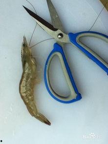- 用剪刀尖轻轻挑出虾线,然后慢慢拉出。